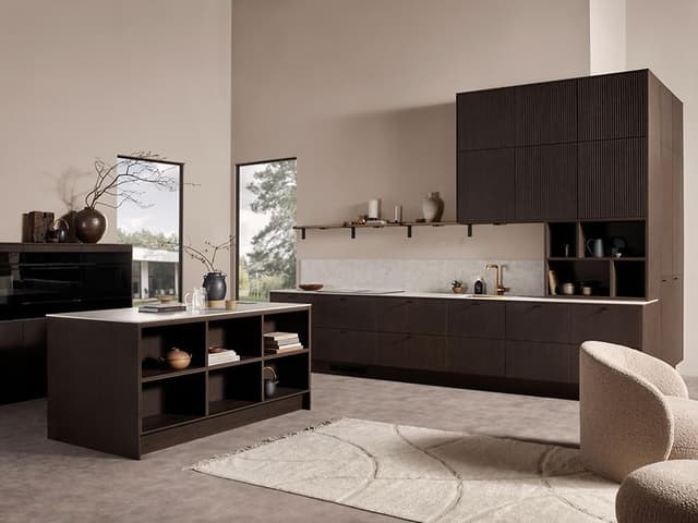 Lue lisääPillar-sarjan keittiönovia koristavat pystysuoraan veistetyt linjat, ja saatavilla on sekä vaalea että tumma tammi.