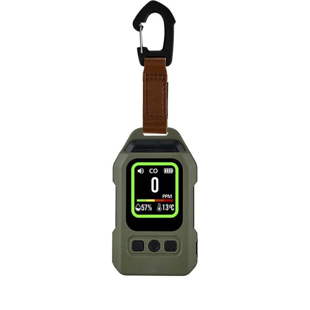 Kannettava hiilimonoksidi-ilmaisin: CO-mittari magneettikiinnityksellä, LED-valolla ja lämpötila-/kosteusnäytöllä Ruohon väri