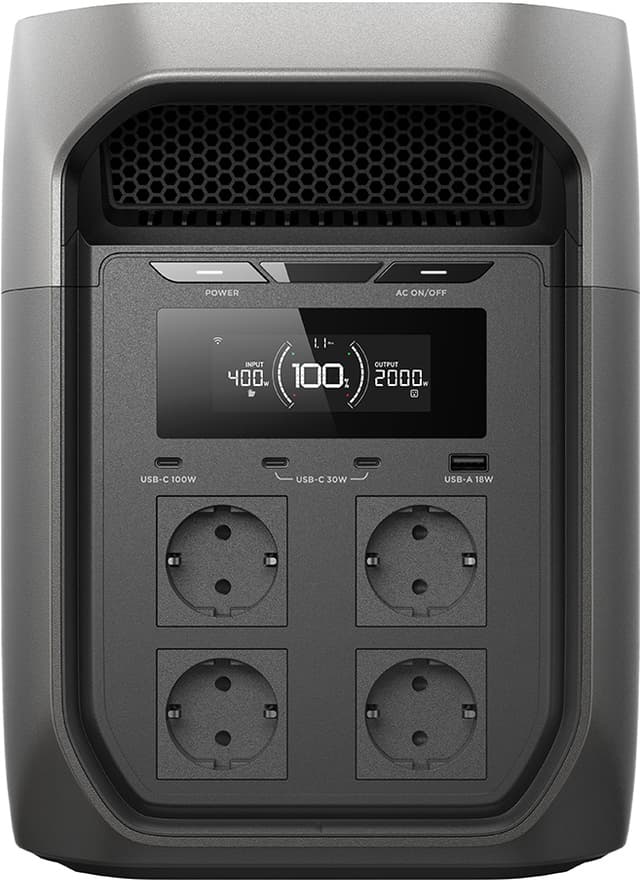 Virta-asemassa on erilaisia liitäntöjä eri laitteille. Se, minkä kokoisille laitteille se voi syöttää virtaa, riippuu liitännän enimmäistehosta, joka ilmoitetaan watteina. Jos liitännän enimmäisteho on 1 200 wattia, se voi syöttää virtaa laitteisiin, joiden teho on enintään 1 200 W. On hyvä pitää mielessä, että joidenkin laitteiden käynnistys vaatii ilmoitettua enemmän tehoa.