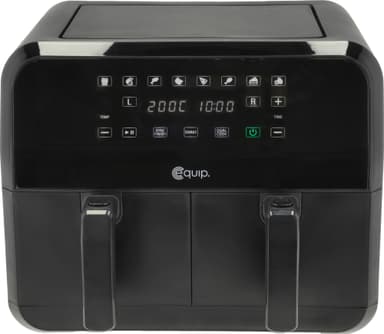 1700 W Equip Dual -kiertoilmakypsennin sisältää 8 esiasetusta paistamiseen, ruskistamiseen, grillaukseen ja kypsennykseen. Laite sisältää kaksi 4 l koria samanaikaiseen ruoanlaittoon ja LED-kosketusnäytön, jonka avulla voit asettaa lämpötilan.Tutustu ominaisuuksiin