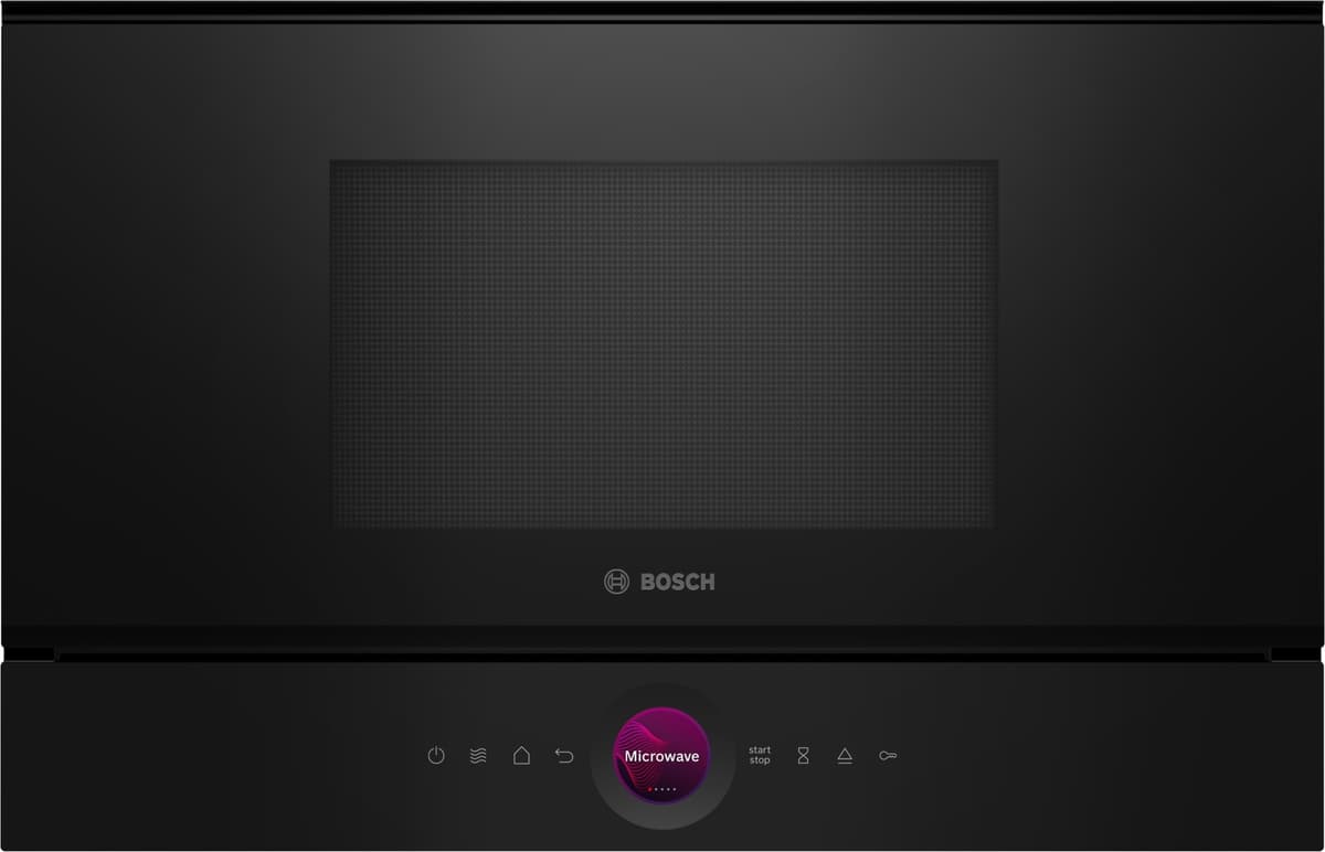 Bosch Microwave BFR7221B1: Tyylikäs 900 W:n sisäänrakennettu yksikkö, jossa on 5 tehoasetusta, 21 litran ruostumattomasta teräksestä valmistettu ontelo ja käyttäjäystävälliset Soft Touch -ohjaimet.Tutustu ominaisuuksiin