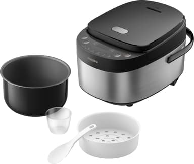 Keitä pehmeää riisiä 600 W Philips 3000 Series -riisikeittimellä. Siihen mahtuu 0,85 litraa kypsentämätöntä riisiä, ja se kypsentää 2,5 litraa vain 30 minuutissa. Siinä on 8 ohjelmaa ja lämpimänäpitotoiminto.Tutustu ominaisuuksiin