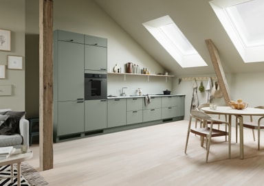 Trend Sage -paneelien avulla voit luoda upean keittiön, joka ei mene pois muodista moneen vuoteen. Sen avulla voit lisätä väripalettiin puhtaan ja tyylikkään harmaanvihreän värin, jossa on hopean sävyjä.Tutustu ominaisuuksiin