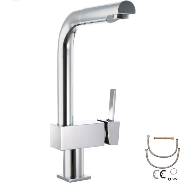 Omituisen muotoiset astiat eivät ole ongelma tämän käytännöllisen tectaken keittiösekoitushanan kanssa. Tämä 180 astetta kääntyvä ja ulosvedettävällä putkella varustettu sekoitushana yltää tiskialtaasi jokaiseen senttiin ja selviytyy vaivattomasti syvistä pannuista, korkeareunaisista kattiloista ja suurista paistinpannuista. Hanan ulosvedettävän letkun ansiosta veden virtaus voidaan helposti kohdistaa ympäri tiskialtaita. Keraaminen patruunatekniikka takaa pitkäaikaisen tarkkuuden ja helppokäyttöisyyden hienosta suihkusta tehokkaaseen suihkuun. Kromattu sekoitushana on helppo pitää puhtaana, ja se on helppo asentaa mukana toimitettujen kiinnitystarvikkeiden avulla. Veden lämpötilaa ja voimakkuutta säädetään yhdellä vivulla, mikä tekee hanasta käytännöllisen ja antaa sille modernin ilmeen. Tällä kätevällä tectaken keittiön sekoitushanalla voit tuoda keittiöön maksimaalista joustavuutta.