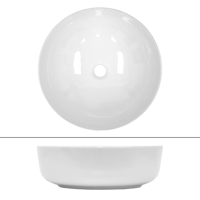 Pienellä reunalla varustettu minimalistinen pyöreä muotoilu yhdistää esteettisen ilmeen tilavaan ja tilaa säästävään pesutilaan.