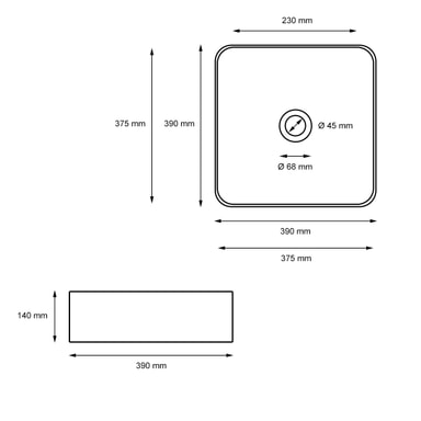 Mitat (LxSxK): 390 x 390 x 140 mm
