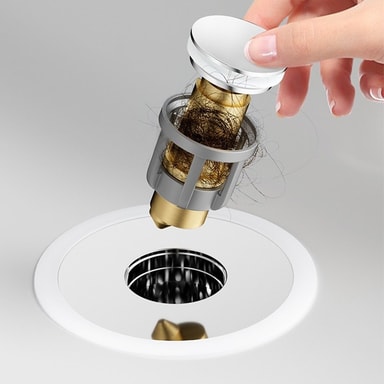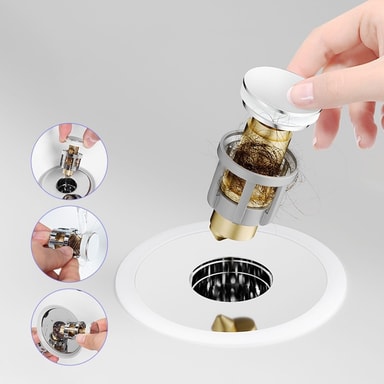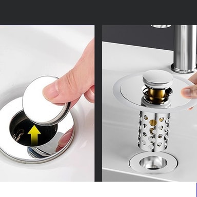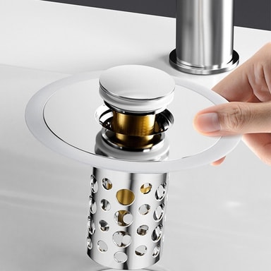 Hajunpoisto ja suodatus: Pesuallas ponnahdusydin on varustettu edistyksellisellä hajunpoisto- ja suodatusjärjestelmällä, joka estää epämiellyttävien hajujen leviämisen kylpyhuoneeseen. Sen sisäänrakennettu hiusten suodatin estää hiusten ja muiden roskien pääsyn viemäriin, mikä ehkäisee tukoksia ja helpottaa puhdistusta. Tämä ominaisuus on erityisen hyödyllinen perheille ja niille, jotka haluavat pitää kylpyhuoneensa puhtaana ja raikkaana. Sen helppo puhdistettavuus ja vaihdettavat suodattimet tekevät siitä hygieenisen ja pitkäikäisen ratkaisun. Lisäksi sen tiivis rakenne estää veden vuotamisen ja varmistaa, että kylpyhuone pysyy kuivana ja siistinä.