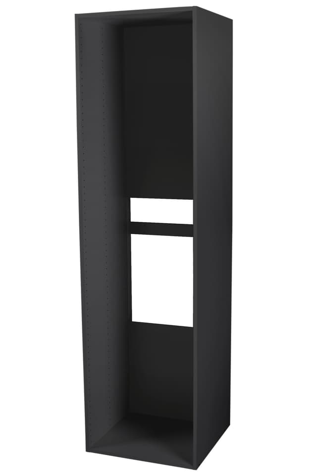 Kestävä kaapin runko integroitaville kodinkoneille. Runko on valmistettu 18 mm puukuitulevystä ja pinnoitettu tummanharmaalla melamiinikalvolla.Tutustu ominaisuuksiin
