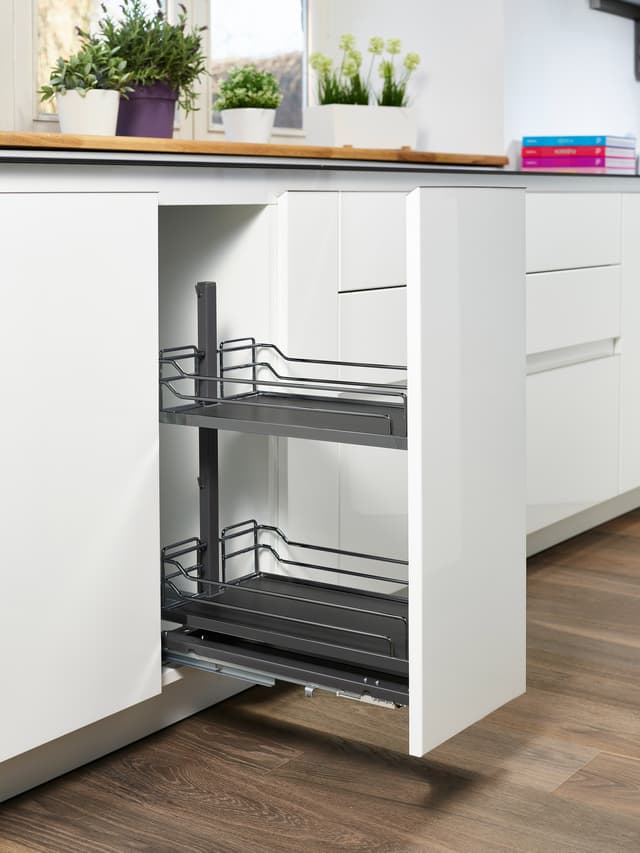 Ulosvedettävät Epoq Dispensa Jr III Arena Classic 30 -hyllyt luovat joustavaa tilaa reaaliaikaisella 3D-mukautusjärjestelmällä. Se sisältää kaksi hyllyä, jotka kannattelevat 12 kg kuorman per hylly. Niihin pääsee käsiksi kaapin molemmilta puolilta.Tutustu ominaisuuksiin