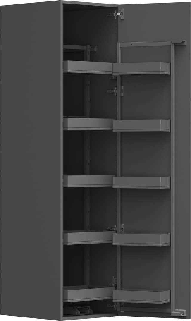 Ulosvedettävä Epoq Tandem Arena Pure 50 -hyllyjärjestelmä varmistaa, että keittiösi on yhtä kaunis sisältä kuin ulkoa. Hylly-yksikkö koostuu korkeussäädettävistä tarjottimista, jotka tulevat esiin oven avaamisen jälkeen. Tarjottimet kestävät yhteensä jopa 80 kg kuorman. Lisäksi tämä älykäs ulosvedettävä ratkaisu liikkuu niin vaivattomasti, että voit avata sen yhdellä kädellä, vaikka se olisi täysin kuormitettu. Käytettäväksi E12025019572-mallin kanssa.