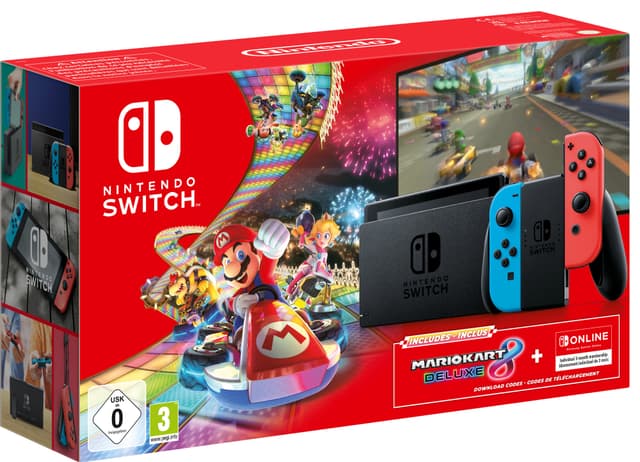 Käynnistä moottorit ja kilpaile ystäviesi kanssa Nintendo Switch -pelikonsolin ja Mario Kart 8 Deluxe -pelin parissa. Pelikonsolin ja pelin lisäksi pakkaus sisältää myös Nintendo Switch Online -jäsenyyden kolmeksi kuukaudeksi.Tutustu ominaisuuksiin