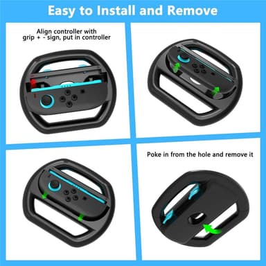 • 2 kpl Nintendo Switch -yhteensopivaa Joy-Con-kahvoja ja kilparattikahvat. Lisävarusteet.