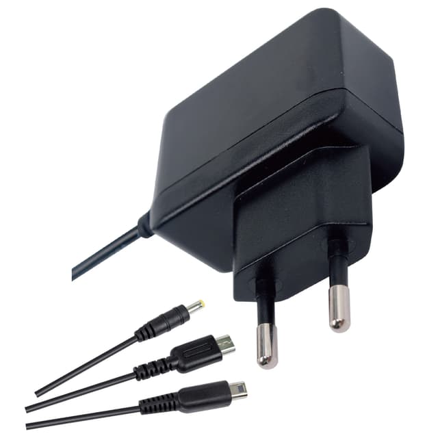 Piranha -laturi Nintendo 3DS, DSi, DS lite, New 3DS, PlayStation Portable ja PlayStation Vita -käsikonsoleille. Kompaktissa laturissa on micro-USB ja mini-USB -liitännät, joten voit ladata sillä myös muita yhteensopivia laitteita. Toimii 100-240V verkkovirralla.