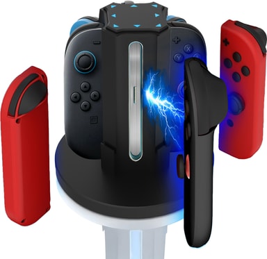 Piranha x GhostGear Nintendo Switch 1/2 Joy-Cons -laturi mahdollistaa kahdeksan Joy-Con-ohjaimen lataamisen samanaikaisesti, sisältää USB-C–C-pikalatausliitännän, voi säilyttää jopa 12 pelikasettia ja tarjoaa kaksi latauspaikkaa.Tutustu ominaisuuksiin