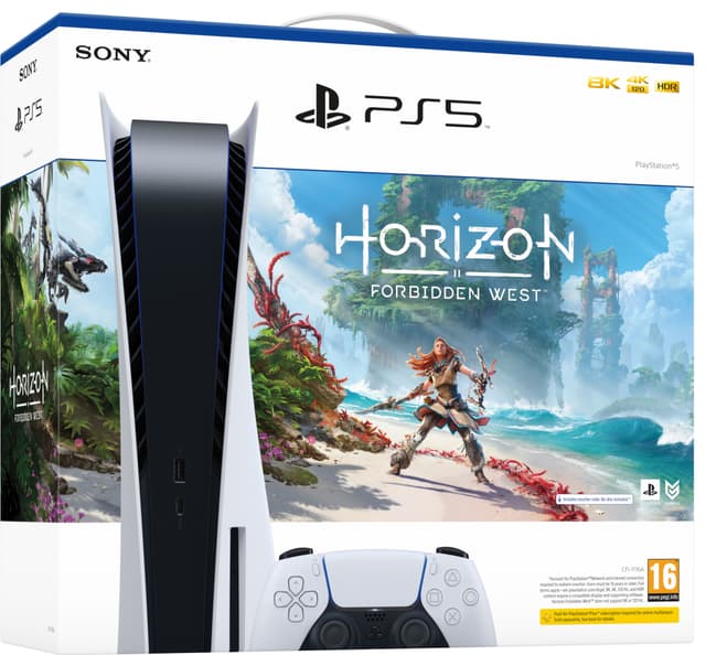 • PlayStation 5 (PS5) pelikonsoli + Horizon Forbidden West