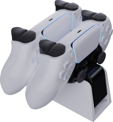 Lataa PS5-ohjainten akut nopeasti Piranha PS5 -lataustelakalla. USB-C - USB-A -kaapelilla pelikonsoliin yhdistettävä lataustelakka lataa kaksi PS5-ohjainta nopeasti ja langattomasti. Telakan kumiset jalat pitävät sen tukevasti paikallaan.Tutustu ominaisuuksiin