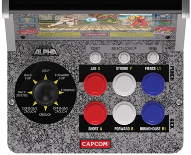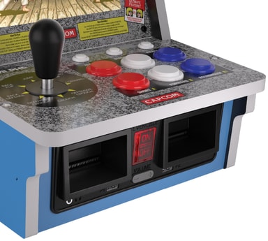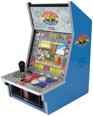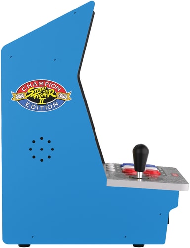 Tämä pelikone on kompakti 16 tuuman korkuinen minikabinetti, jossa on täysikokoinen joystick ja kuuden napin asettelu, joka tuo mieleen klassiset arcade-koneet. Siinä on kolme valaistua, vaihdettavaa marquee-kylttiä, kuten Street Fighter II’ Champion Edition, Street Fighter Alpha Warriors’ Dream ja Street Fighter Alpha 2 sekä Street Fighter -teemainen muotoilu.