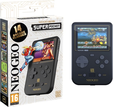 Kannettavassa HyperMegaTech Neogeo Super Pocket -pelilaitteessa on 14 klassista peliä. Siinä on 320x240 pikselin IPS-näyttö, USB-C-lataus ja yli 4 tunnin akkukesto. Sisäänrakennetun Evercade-kasettituen ansiosta voit käyttää yli 600 lisäpeliä.Tutustu ominaisuuksiin