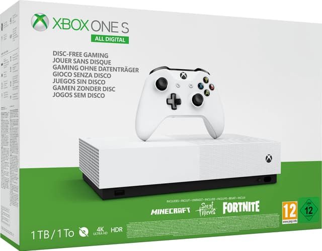 Xbox One S All-Digital Edition -konsolilla voit pelata suosikkipelejäsi ilman fyysisiä levyjä. Konsolin mukana tulee Minecraft-, Sea of Thieves- ja Fortnite Battle Royale -pelit.Tutustu ominaisuuksiin