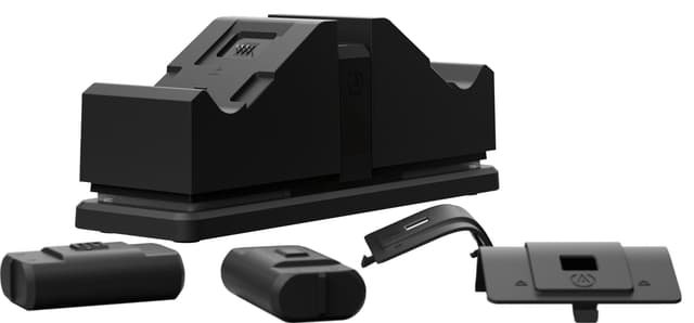 Latausasemaan sopii kaksi Xbox One -ohjainta samanaikaisesti. Laitteen näyttö ilmoittaa latauksen tilan. Tuotteen mukana toimitetaan kaksi lisäakkua, joiden ansiosta voit käyttää langatonta peliohjainta koko pelin ajan.