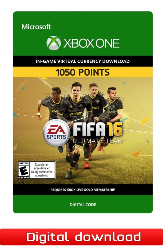 *FIFA ULTIMATE TEAM REQUIRES FIFA 16 FOR XBOX ONE (SOLD SEPARATELY), INTERNET CONNECTION AND EA ACCOUNT TO PLAY. THE EA TERMS OF SALE (http://tos.ea.com/legalapp/termsofsale/us/en/PC) GOVERN YOUR USE OF FIFA POINTS.