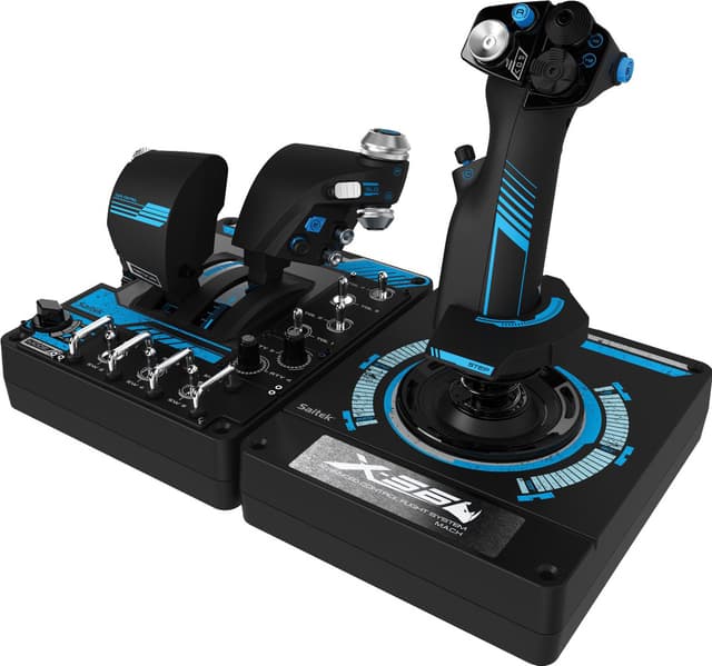 Logitech G Saitek X56 Rhino Flight Control -järjestelmän avulla pystyt hallitsemaan vaativiakin lentosimulaatiopelejä, kuten Flight Simulator X, Star Citizen ja Elite: Dangerous, entistä tehokkaammin. Ohjaa aluksia ammattilaisten tavoin! X56:saa on analogiset mini-ohjaimet, jotka tarjoavat todentuntuisen 6 asteen liikkeen sormenkosketuksella. Ohjaimen taktinen palaute ja muotoilu mahdollistavat sen vaivattoman ohjauksen myös VR-lasit päässä.