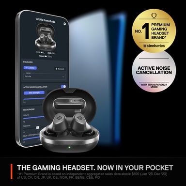 Hanki SteelSeries Arctis GameBuds -kuulokkeet, joissa on aktiivinen melunvaimennus yhdessä Sonar Surround - ja Tempest 3D -äänen kanssa sekä neodyymielementit, jotka takaavat terävän ja täyden äänenlaadun. Ota kuulokkeet mukaan minne tahansa niiden IP55-luokituksen ansiosta ja käytä niitä 10 tuntia tai jopa 40 tuntia latauskotelon kanssa. Hyödynnä rajattomat mukautusmahdollisuudet SteelArctis Companion -sovelluksen avulla ja hienosäädä taajuuskorjainta tai lataa yli 100 esiasetusta.