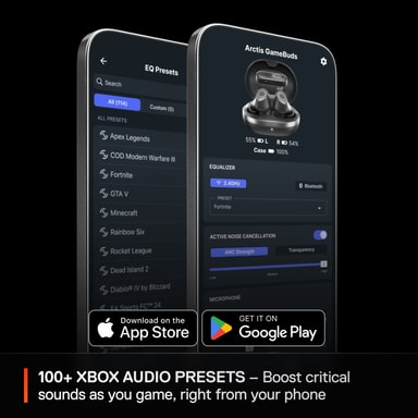 Hanki SteelSeries Arctis GameBuds -kuulokkeet, joissa on aktiivinen melunvaimennus, Sonar Surround -ääni, Microsoft Spatial -ääni X-box konsolia vartensekä neodyymielementit, jotka takaavat terävän ja täyden äänenlaadun. Ota kuulokkeet mukaan minne tahansa niiden IP55-luokituksen ansiosta ja käytä niitä 10 tuntia tai jopa 40 tuntia latauskotelon kanssa. Hyödynnä rajattomat mukautusmahdollisuudet SteelArctis Companion -sovelluksen avulla ja hienosäädä taajuuskorjainta tai lataa yli 100 esiasetusta.