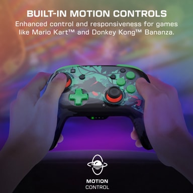 Sisäänrakennetut gyroskooppiset sensorit tukevat täyttä liikeohjausta. Näin saat intuitiivisen tähtäyksen räiskintöihin, tarkan ohjauksen Mario Kartissa ja eleohjauksen Super Mario Odysseyssa – vaste pysyy koko ajan herkkänä.