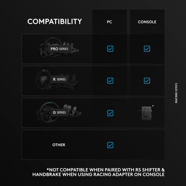 Se tarjoaa laajan yhteensopivuuden, sillä se voidaan liittää USB:n kautta PC-käyttäjille tai suoraan PRO/RS50-alustoihin konsoleille. Se tukee myös vanhempia G-sarjan ratteja erillisen sovittimen avulla, joten se sopii lähes mihin tahansa kilpa-ajoympäristöön.