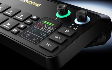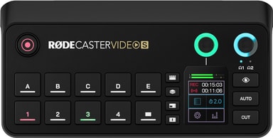 RØDE RØDECaster Video S -konsoli yhdistää videonvaihdon ja äänimiksauksen. Siinä on 3 HDMI-tuloa, 1 USB-C, 2 XLR/¼″-tuloa ammattimikrofoneille, langattomat mikrofonivastaanottimet, mukautetut kohtausten vaihto- ja suoratoisto- tai tallennusominaisuudet.Tutustu ominaisuuksiin