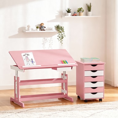 Tectaken käytännöllinen setti, joka koostuu korkeussäädettävästä työpöydästä ja pyörillä liikkuvasta arkistokaapista, tarjoaa sinulle mukavan työskentelypaikan ja riittävästi säilytystilaa muistikirjoille, kansioille, papereille ja paljon muuta.