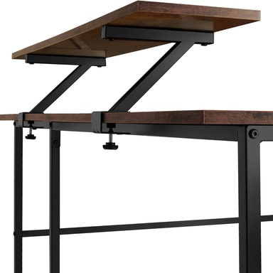 Kohokohdat • Rustiikkinen kulmapöytä yksinkertaisessa teollisessa tyylissä • Rakeiset MDF-levyt, joissa suojaava melamiinipinnoite • Monitorin kiinnitysteline lukitusruuveilla • Vakaa ja vahva teräsrunko, jossa on pulverimaalaus • Korkeussäädettävät muoviset jalat • Helppo siivota • Nopea ja helppo kokoonpano • Färg: Teollinen tumma puu, maalaismainen