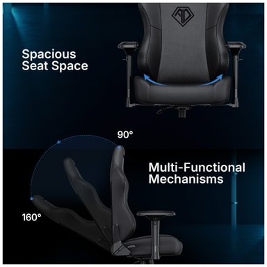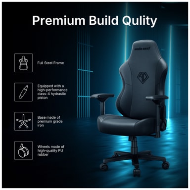 Andaseat Gravity -pelituoli on valmistettu synteettisestä nahasta ja erittäin tiheästä vaahdosta mukavuuden takaamiseksi. Voit säätää korkeutta jopa 10 cm mukavuuden vuoksi. Se kestää jopa 130 kg painon ja sisältää niska- ja selkätyynyt.