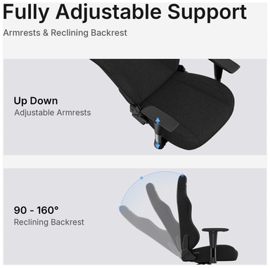 Tyylikkäästä mustasta kankaasta valmistettu AndaSeat Phantom 3 -pelituoli tarjoaa ensiluokkaista mukavuutta ja säädettävyyttä kilpatyylisellä suunnittelulla. Varustettu hydraulisilla typpimännillä, jotka mahdollistavat tasaisen ja vakaan korkeudensäädön, 2D-käsinojan säädön ja valinnaisen kallistuksen jopa 160° asti erilaisiin pöytäasetelmiin ja käyttäjien mieltymyksiin. Tuolin yleinen muotoilu edistää oikeaa ryhtiä ja mukavuutta vähentäen väsymystä pitkäaikaisessa käytössä leveiden pelisessioiden aikana. Kestää painon 110 kg asti.