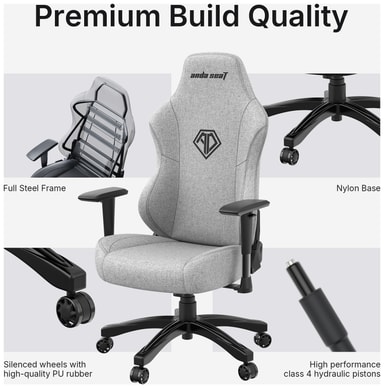 AndaSeaT Phantom 3 Premium -pelituoli on ergonominen pelituoli, jossa on jopa 160 asteen kallistus, ja se on valmistettu ensiluokkaisesta pellavasta ja muhkeasta sametista. Se mukautuu vartalosi muotoon ja tarjoaa mukavuutta pitkiin pelisessioihin.Tutustu ominaisuuksiin