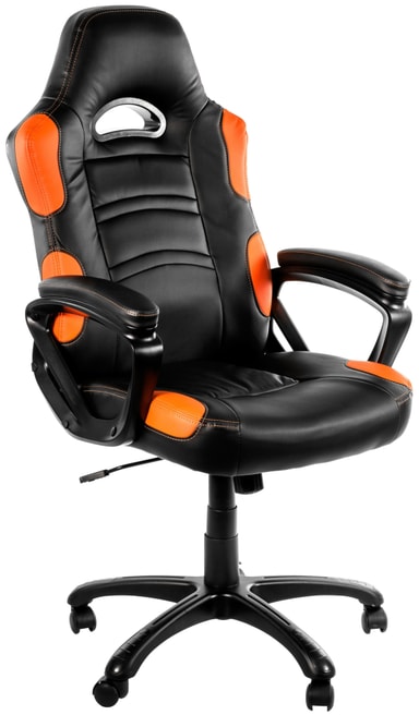 Arozzi Enzo gaming chair on erityisesti pelaajille kehitetty tyylikäs työtuoli. Tuolin muotoilun inspiraation lähteenä on käytetty ralliautojen istuimia ja sen istuinta voidaan säätää omien mieltymysten mukaan. Mustasta keinonahkasta valmistetussa tuolissa on näyttävät oranssit yksityiskohdat ja se on helppo puhdistaa. Kevyessä tuolissa on pyörivä jalka, jossa 5 kestävää pyörää.