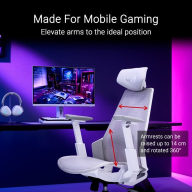 Nauti mukavuudesta ja pysy keskittyneenä vaativien pelimaratonien aikana Asus ROG Destrier Core -pelituolilla. Sen 360° kääntyvät 3D-käsinojat, säädettävä istuinkorkeus, 136 kg painoraja, hengittävä verkkomateriaali ja lannerangan tuki tarjoavat vakaata mukavuutta.