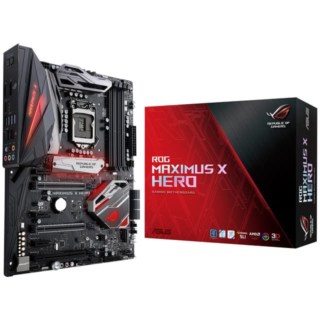 Asus ROG Maximus X Hero -emolevy on kuin luotu tehokkaan pelitietokoneen kokoamiseen. Emolevy tukee 8. sukupolven Intel-prosessoreja ja usean näytönohjaimen asennusta. SupremeFX takaa upean tilaäänen, ja Aura Sync RGB -valaistus täydentää tyylin.Tutustu ominaisuuksiin