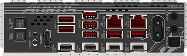 Emolevyssä on Wi-Fi 7 (802.11be) nopeaan langattomaan verkkoon ja 10 Gb Ethernet-portti nopeisiin langallisiin yhteyksiin, tarjoten erinomaiset vaihtoehdot verkkoyhteyksille. HDMI 2.1- ja DisplayPort 1.4 -liitännät takaavat korkealaatuisen videolähdön erilaisille näytöille.