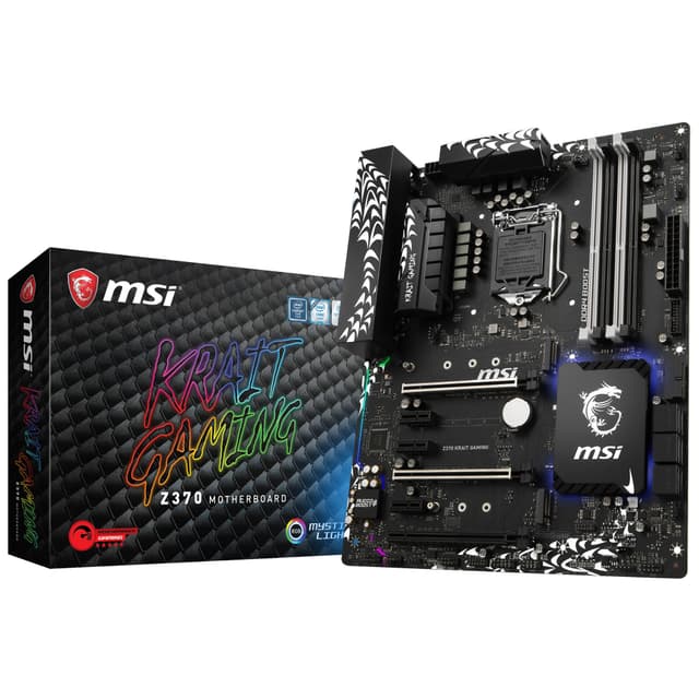 MSI Z370 Krait Gaming -emolevyn avulla kokoat tehokkaan pelitietokoneen edistyneellä jäähdytyksellä, Mystic RGB -valoilla ja VR-tuella. ATX-formaatin emolevyssä on LGA1151-kanta 8. sukupolven Intel-prosessoreille ja tuki usealle grafiikkaprosessorille. Voit asentaa jopa 64 GB nopeaa DDR4 RAM -muistia ja erittäin responsiivista M2.SSD-muistia. Laajan liitäntävalikoiman ansiosta voit liittää siihen myös näytön jopa 4K UHD -resoluutiolla, 7.1 HD -audiolaitteen tai nopeita USB 3.1 -laitteita.