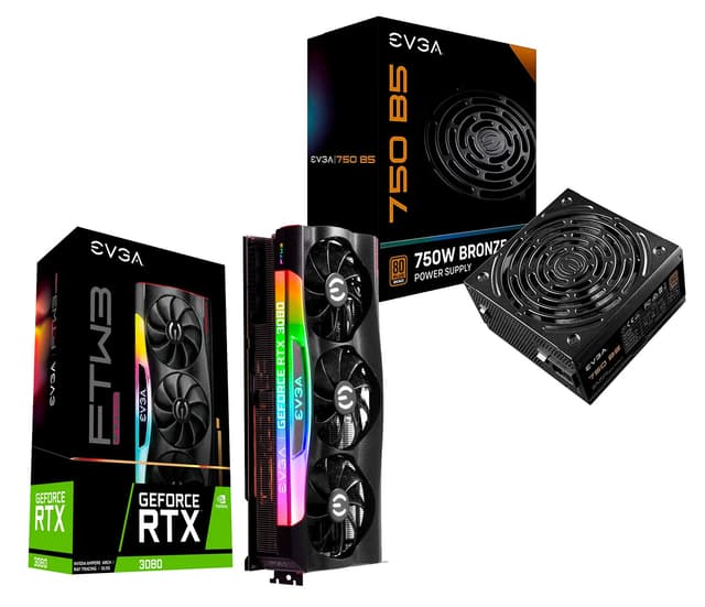 The EVGA GeForce RTX 3080 delivers the unprecedented performance that gamers crave for 4K resolution gaming, powered by the NVIDIA Ampere architecture. It's built with enhanced RT Cores and Tensor Cores, new streaming multiprocessors, and superfast G6X memory for an amazing gaming experience. Combined with the next generation of design, cooling, and overclocking with EVGA Precision X1, the EVGA GeForce RTX 3080 Series presents a new definition in ultimate performance. Also included in the packade is the EVGA B5 power supplies, the latest 80PLUS Certified Bronze power supplies to carry on the EVGA tradition of reliability, performance, and affordability. The B5 power supplies start with the most important standard for reliability
