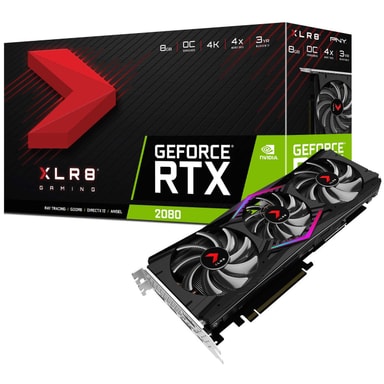 PNY GeForce RTX 2080 XLR8 OC Triple Fan -näytönohjain nostaa tietokoneesi tehon aivan uudelle tasolle. Innovatiivinen Turing GPU -arkkitehtuuri kykenee luomaan ympäristöjä, joissa on valokuvarealistisia esineitä, joita on lähes mahdoton erottaa todellisista objekteista. Laajennettu CUDA-ydintaajuus, 256-bittinen kaistanleveys ja nopea 8 GB GDDR6 -keskusmuisti takaavat sen, että näytönohjain pyörittää 4K UHD -pelit sujuvalla ruudunpäivitysnopeudella.