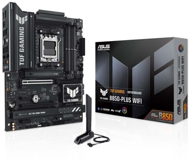 The ASUS TUF GAMING B850-PLUS WIFI is an ATX motherboard built for AMD Ryzen™ 7000, 8000, and 9000 series processors on the AM5 socket. It delivers strong performance with a 14+2+1 (80A) power stage design and support for high-speed DDR5 memory up to 8000+ MT/s (OC).