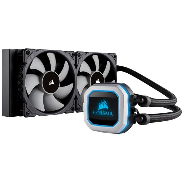 - AMD socket AM2, AM3, AM4Corsair Hydro H100i Pro liquid cooler lets you run even extremely overclocked Intel or AMD CPUs while maintaining safe operating temperature. The cooler features double-width 240 mm aluminum radiator with two 120 mm PWM fans for optimum cooling performance. The radiator-fan assembly fits into many double 120 mm fan mounts. The closed loop design comes pre-filled and features improved cold plate with pre-applied thermal paste.