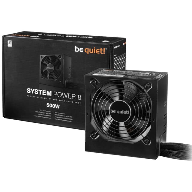 Luotettava be quiet! System Power 8 -virtalähde tarjoaa tehokkaan ja vakaan virran ATX-formatin pöytätietokoneellesi. 80 Plus -sertifioidussa virtalähteessä on hiljainen 120 mm tuuletin. Kaksi 12V kiskoa ja kaksi PCle-liitintä takaavat tasaisen vakaan virrantuoton jopa tuplagrafiikalla varustetuille pelitietokoneille.
