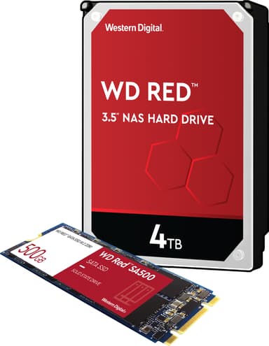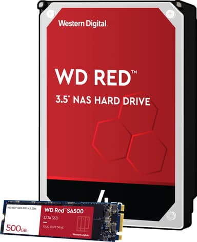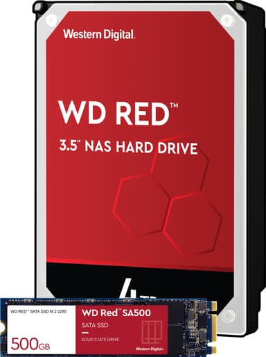 WD Red 3,5" 4 TB kovalevy ja WD Red SA500 500 GB M.2 SATA SSD