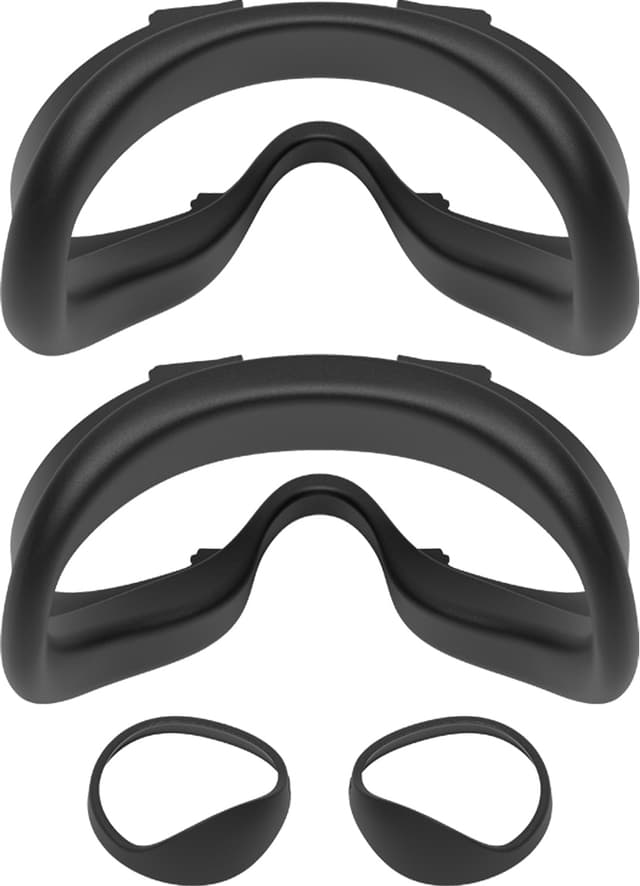 Meta Quest 2 Fit Pack V2 -pakkaus sisältää kaksi naamapehmustetta ja valosuojaparin, jotka estävät ympäristön valoa häiritsemästä lasien käyttöä. Voit käyttää leveämpää tai ohuempaa pehmustetta mielesi mukaan.