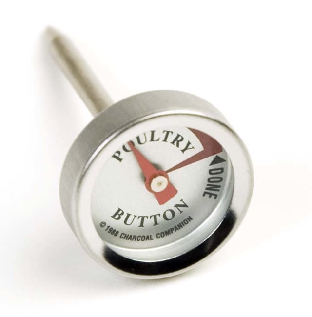Button-lämpömittarit ovat todellinen tapa valmistaa naudanlihaa, sianlihaa ja siipikarjaa turvalliseen lämpötilaan. Tämä siipikarjapainike® rekisteröi, kun liha on täysin kypsennetty.