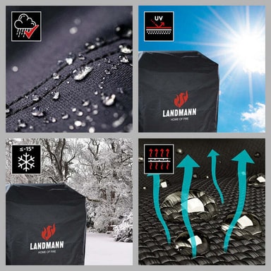 Suojaa grillisi Landmann Premium Suojapeitteellä L Black – erityisen kestävä ja säänkestävä grillin suojapeite tyylikkään mustana.Tutustu ominaisuuksiin